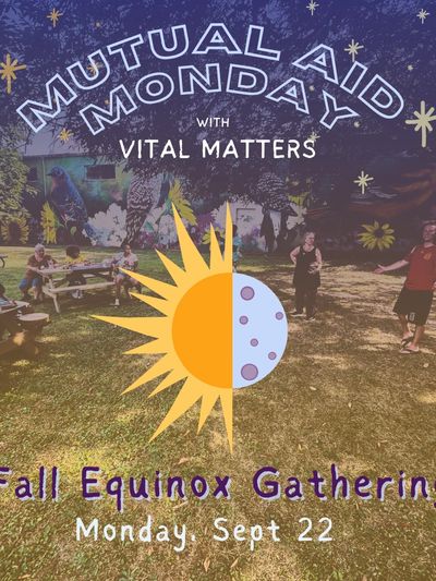 Our 5th Mutual Aid Monday is an event for the whole family. It's an opportunity to gather around themes inspired by the Fall Equinox, and a special chance to hear about Vital Matters Crossways project, and meet some of the folks from the Gwynns Falls Community who will be working on it with us.